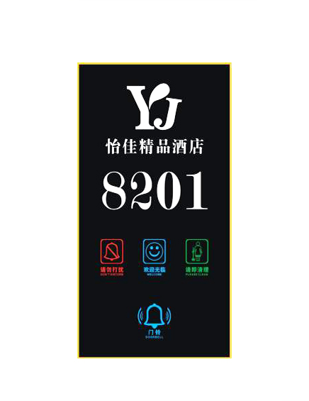 圖為怡佳精品酒店門(mén)鎖使用的固麗佳可定制鋼化玻璃門(mén)牌