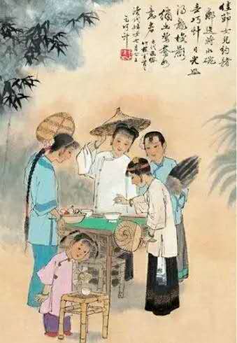 七夕乞巧,這個節(jié)日起源于漢代,東晉葛洪的《西京雜記》有“漢彩女常以七月七日穿七孔針于開襟樓,人俱習(xí)之”的記載,這便是我們于古代文獻(xiàn)中所見到的最早的關(guān)于乞巧的記載。后來的唐宋詩詞中,婦女乞巧也被屢屢提及,唐朝王建有詩說“闌珊星斗綴珠光,七夕宮娥乞巧忙”。據(jù)《開元天寶遺事》載:唐太宗與妃子每逢七夕在清宮夜宴,宮女們各自乞巧,這一習(xí)俗在民間也經(jīng)久不衰,代代延續(xù)。